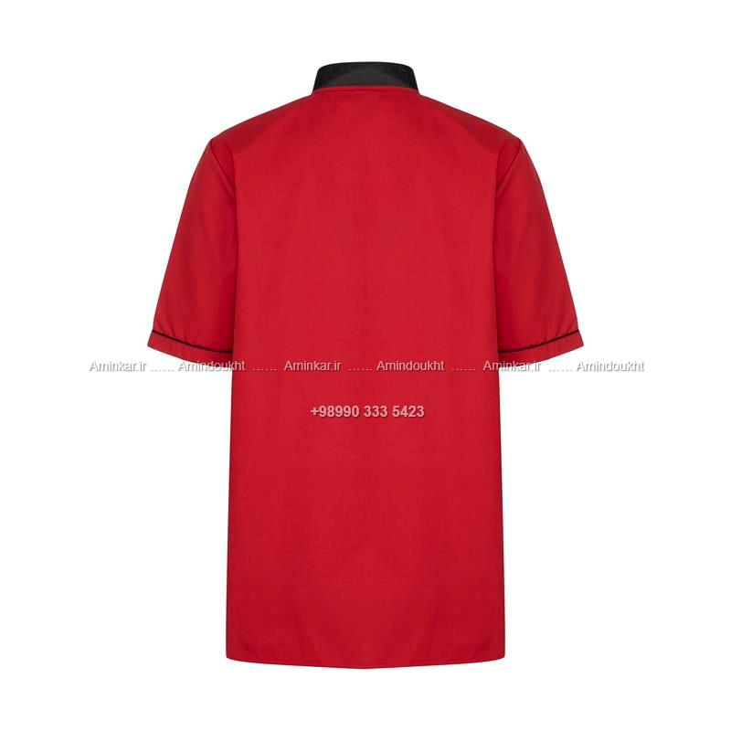 یکی از ویژگیهای برجسته لباس آشپزی کد 43500 طراحی منحصربهفرد آن است. این لباس با رنگ قرمز زنده و نوارهای مشکی که دور یقه، سرشانه و دکمهها دوخته شده، جلوهای شیک و استایل حرفهای به آشپز میبخشد. دکمههای ضربدری به کار رفته در طراحی لباس، نه تنها از لحاظ زیبایی شناسی جذابیت دارند، بلکه به راحتی استفاده از آن نیز کمک میکنند. این دکمهها به گونهای طراحی شدهاند که به راحتی باز و بسته میشوند و انعطافپذیری خوبی برای آشپز فراهم میآورند.